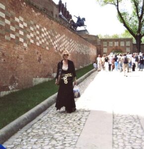 My sister Tina on her visit to Krakow in 2006, standing in front of Wawel Castle as my father did in the 1930s before the Shoah. A poignant reminder of our resilience.
