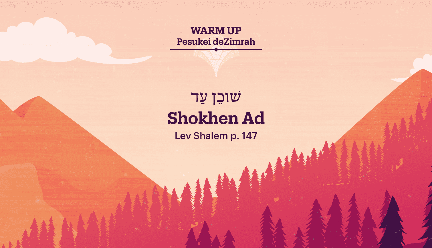 Shokhen Ad concludes Pesukei deZimra, the section of the service that spiritually prepares us to say the Sh’ma and its blessings. In this prayer, we proclaim God’s eternal sovereignty and join the chorus of angels in sanctifying the Divine name.