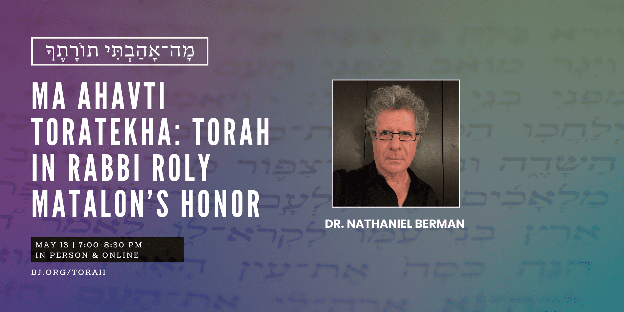 • Ma Ahavti Toratekha: Torah in Rabbi Roly Matalon’s Honor with Dr. Nathaniel Berman
